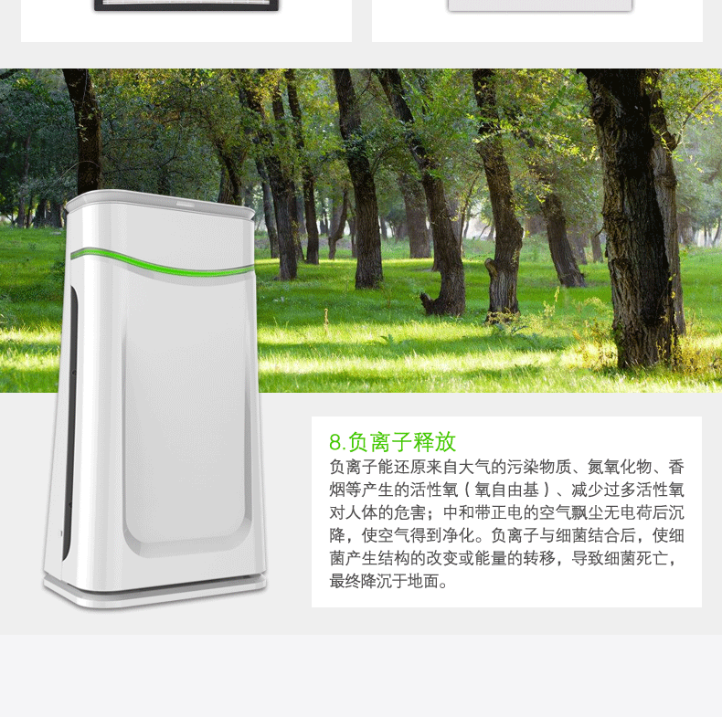 產(chǎn)品簡介:KQ03負(fù)離子空氣凈化器深層凈化,高效徹底,八中凈化更精細(xì),重重過濾鑄就清新空間。負(fù)離子能還原來自大氣的污染物質(zhì)、氮氧化物、香煙等產(chǎn)生的活性氧(氫自由基)減少過多活性氧對人體的危險(xiǎn);中和帶正電的空氣飄塵無電荷后沉降,使空氣得到凈化。負(fù)離子與細(xì)菌結(jié)合后,使細(xì)菌產(chǎn)生結(jié)構(gòu)的改變或能量的轉(zhuǎn)移,導(dǎo)致細(xì)菌死忙,最終降沉于地面。