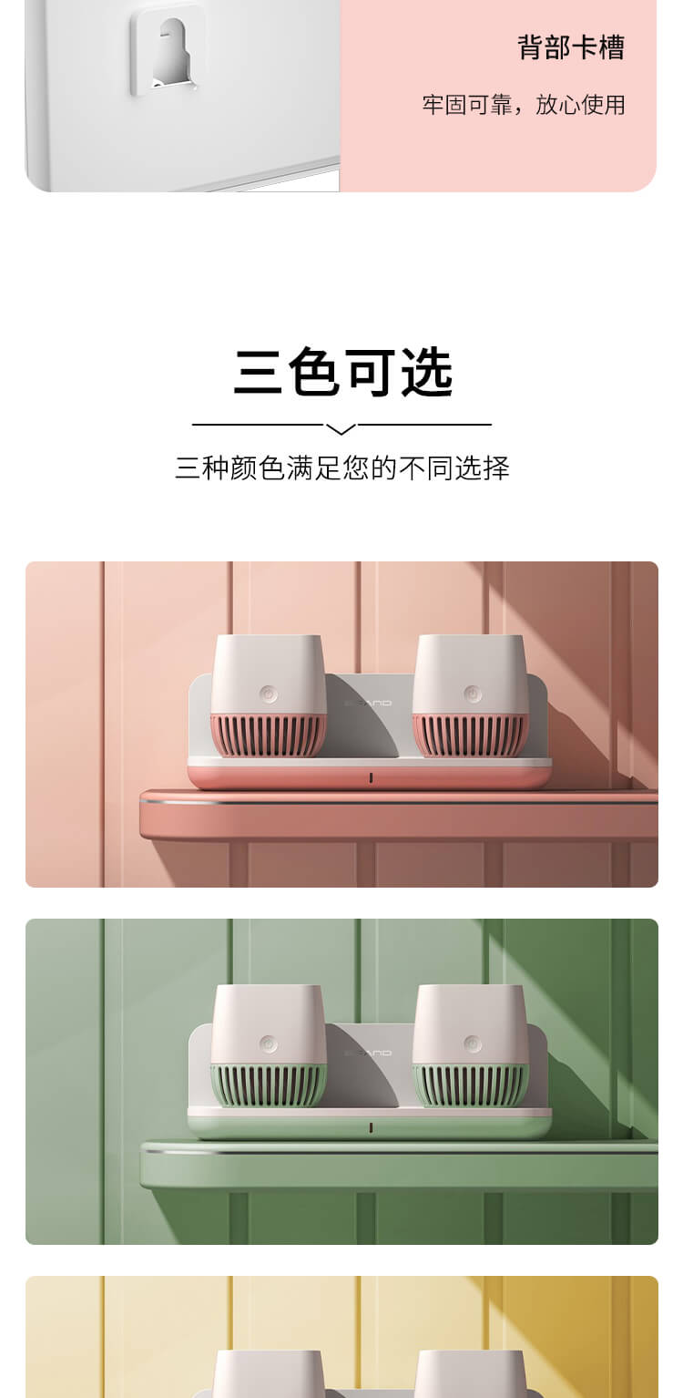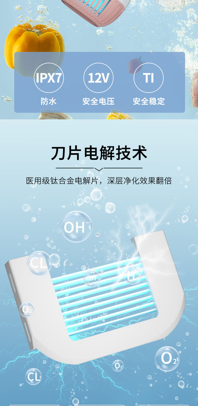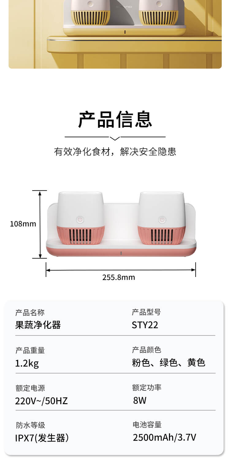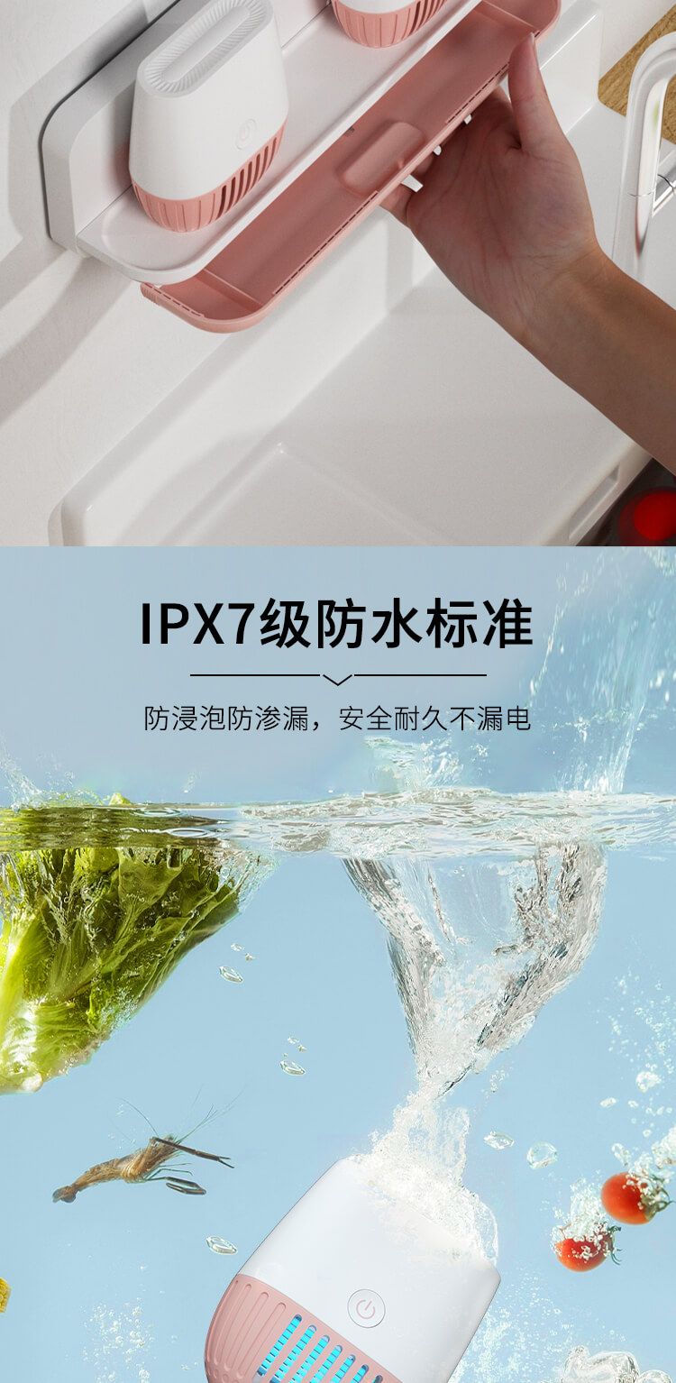 臺面壁掛雙用途,免打孔背膠設計,輕松掛在廚房任意角落,臺面放置小巧不占地方。無線雙倉設計,葷素雙凈同時啟動,專用果蔬、肉類點解發生器,避免交叉感染,雙凈同時啟動,省時更高效。